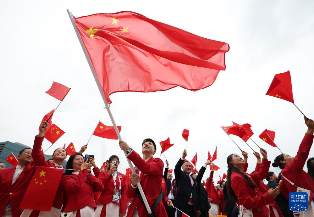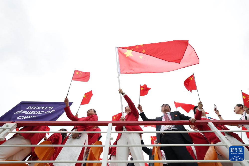 7月26日,中國體(ti) 育代表團在開幕式上。新華社記者 萬(wan) 象 攝