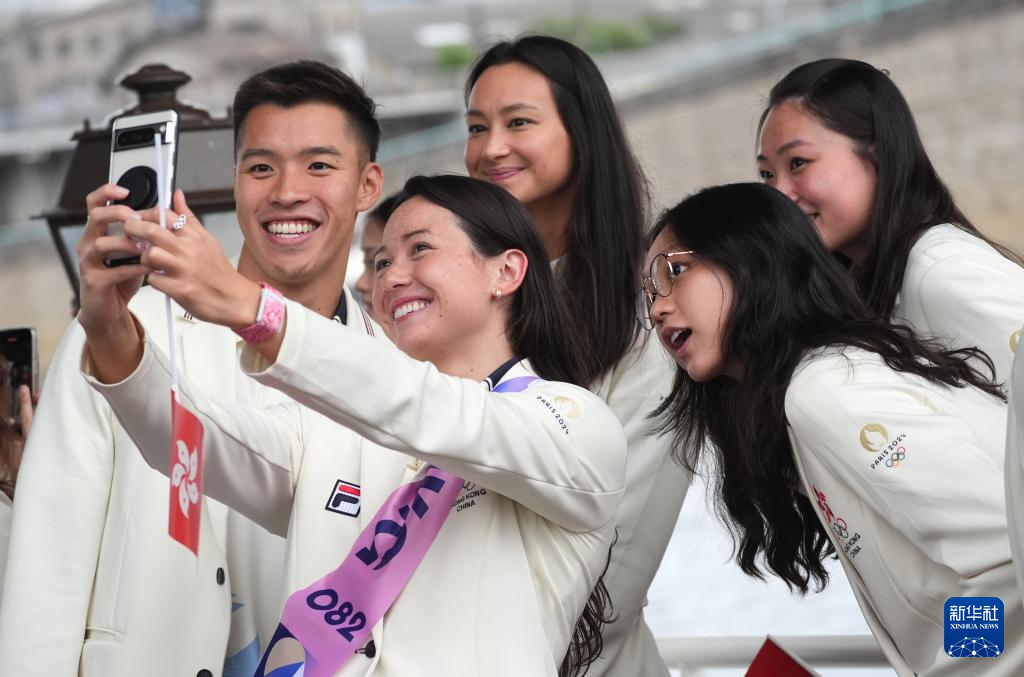 7月26日,中國香港體(ti) 育代表團成員在開幕式上自拍。新華社記者 呂小煒 攝pagebreak