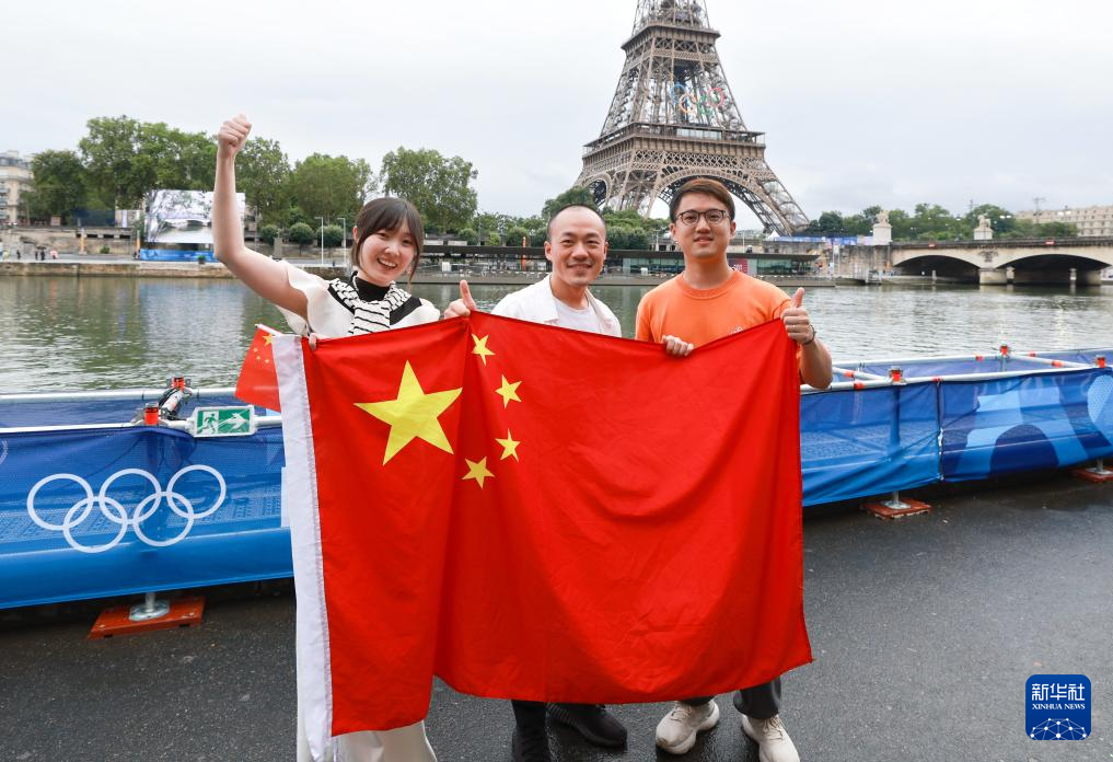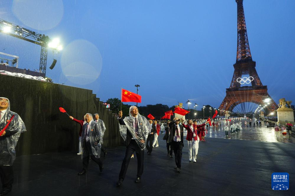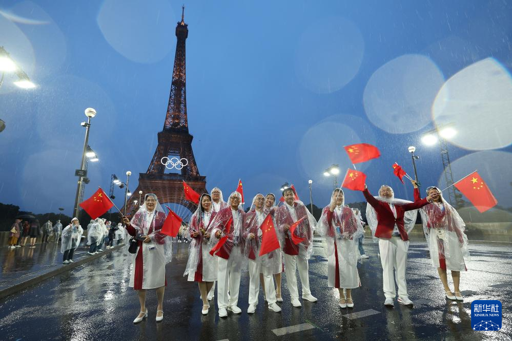 7月26日,中國體(ti) 育代表團成員在埃菲爾鐵塔前。新華社記者 李明 攝pagebreak
