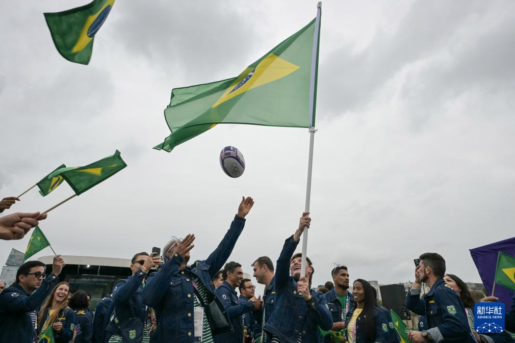 7月26日,巴西體(ti) 育代表團成員在開幕式上。新華社記者 王東(dong) 震 攝