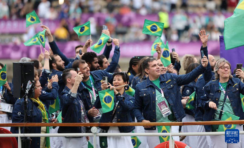 7月26日,巴西體(ti) 育代表團成員在開幕式上。新華社記者 陳斌 攝