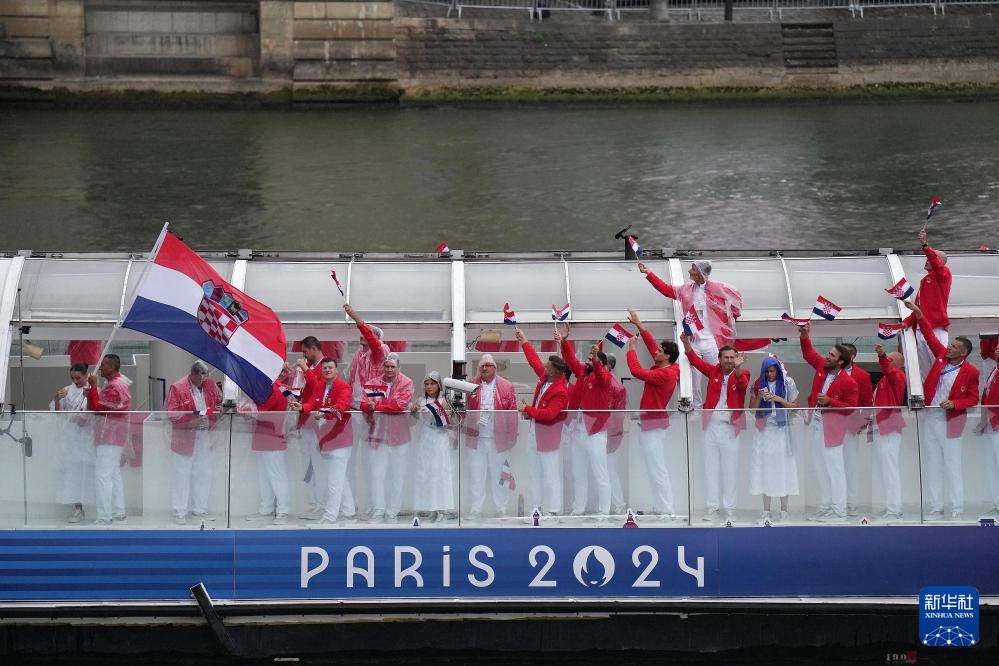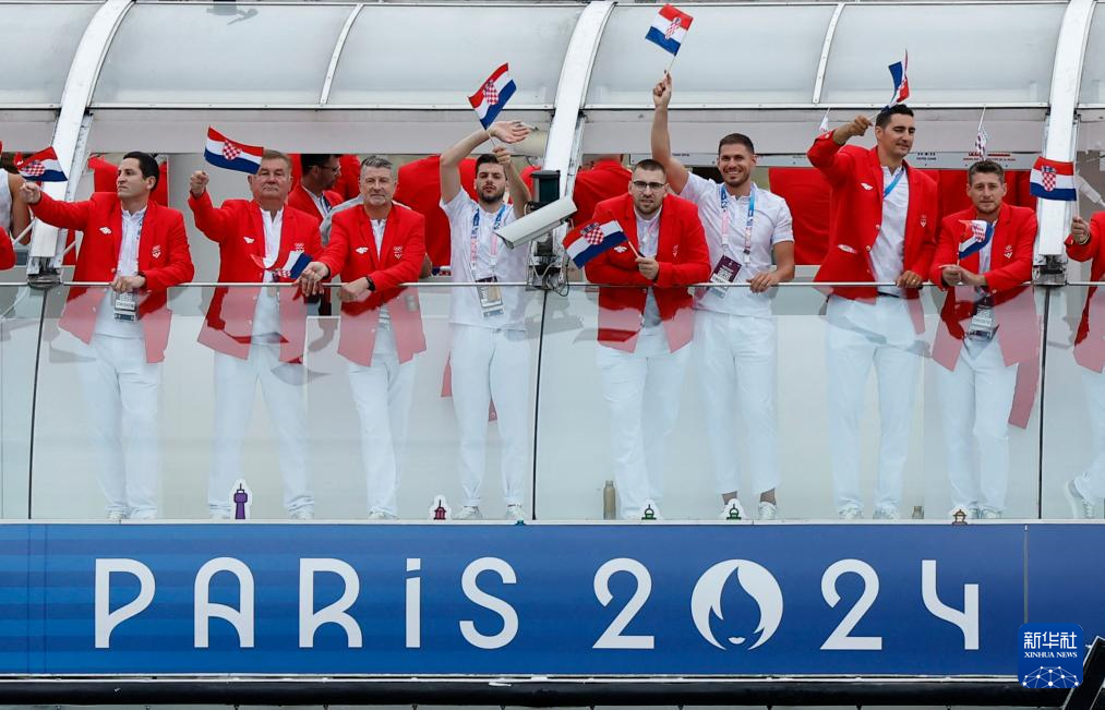 7月26日,克羅地亞(ya) 體(ti) 育代表團成員在開幕式上。新華社發(POOL照片/克洛達赫·基爾科因)pagebreak