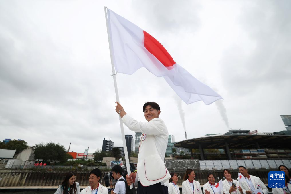 7月26日,日本體(ti) 育代表團在開幕式上。新華社記者 江文耀 攝