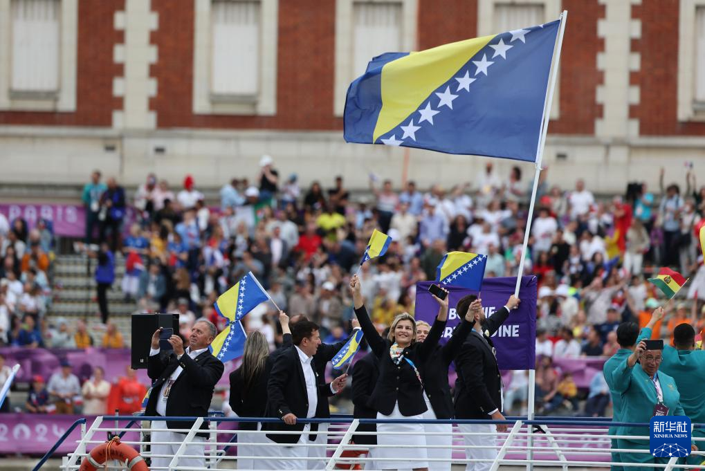 7月26日,波斯尼亞(ya) 和黑塞哥維那體(ti) 育代表團在開幕式上。新華社記者 王東(dong) 震 攝