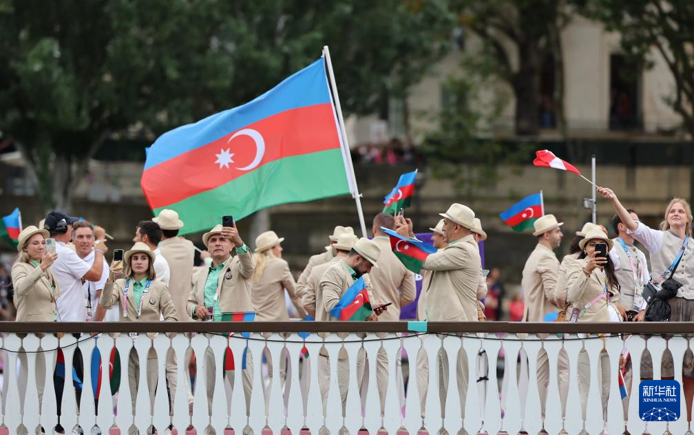 7月26日,阿塞拜疆體(ti) 育代表團成員在開幕式上。新華社記者 王東(dong) 震 攝