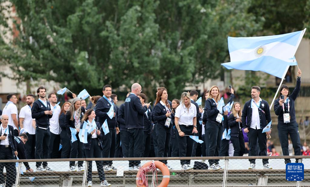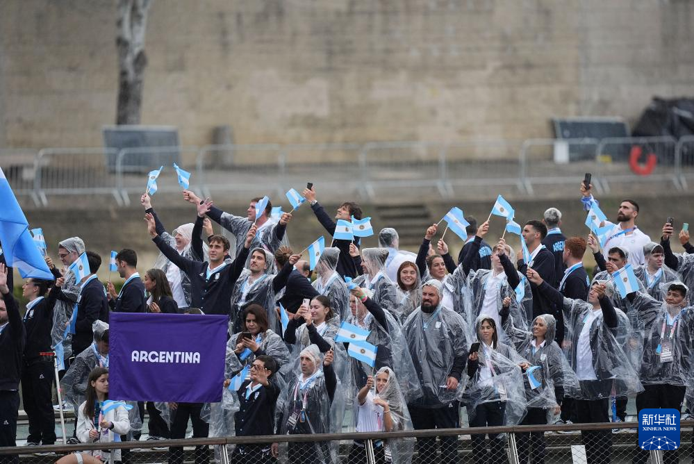 7月26日,阿根廷體(ti) 育代表團成員在開幕式上。新華社記者 王東(dong) 震 攝