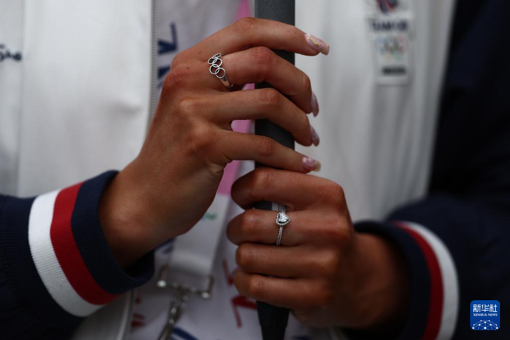 這是7月26日拍攝的一名英國體(ti) 育代表團成員佩戴的有奧運五環元素的戒指。新華社發(POOL照片/娜奧米·貝克)