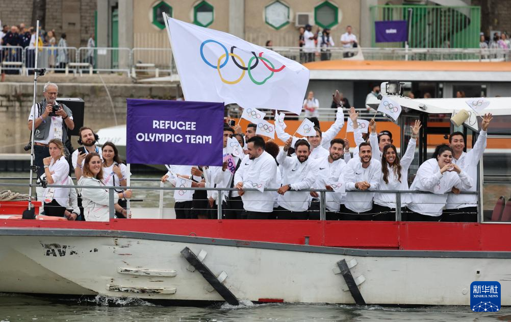 7月26日,難民體(ti) 育代表團在開幕式上。新華社記者 呂小煒 攝