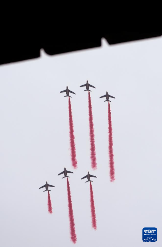 7月26日,飛機在開幕式上表演。新華社發(POOL照片/艾賈茲(zi) ·拉希)