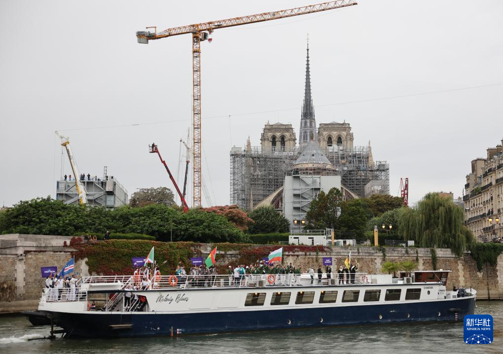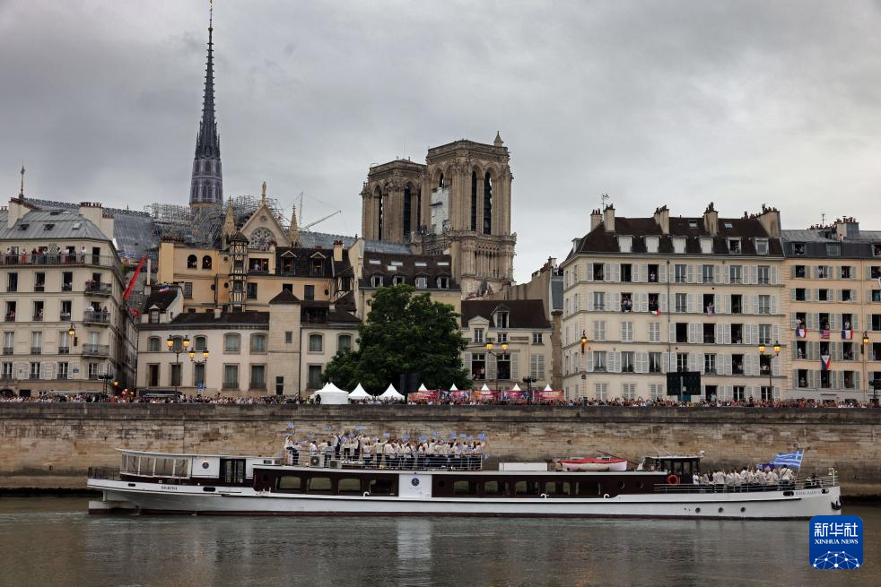 7月26日,各體(ti) 育代表團在開幕式上,右側(ce) 是巴黎聖母院。新華社發(POOL照片/丹·馬蘭(lan) )pagebreak