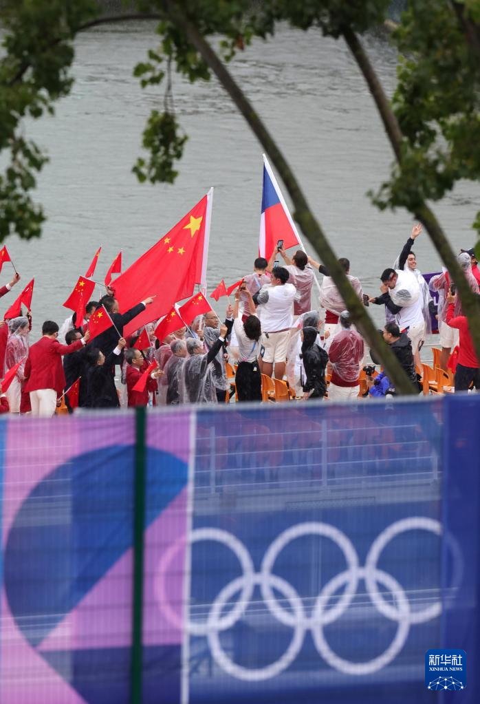 7月26日,中國體(ti) 育代表團成員在開幕式現場。新華社記者 王毓國 攝