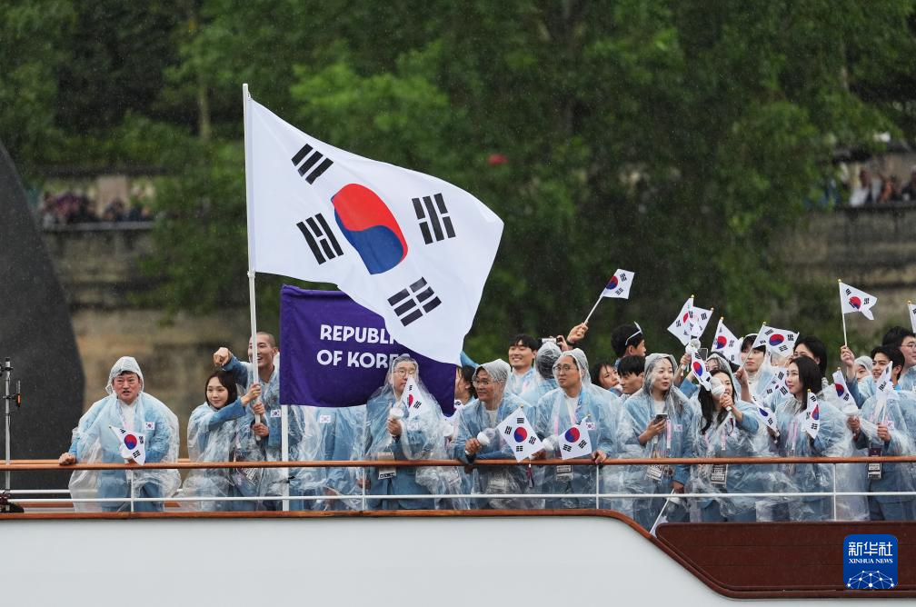7月26日,韓國體(ti) 育代表團在開幕式上。新華社記者 江文耀 攝