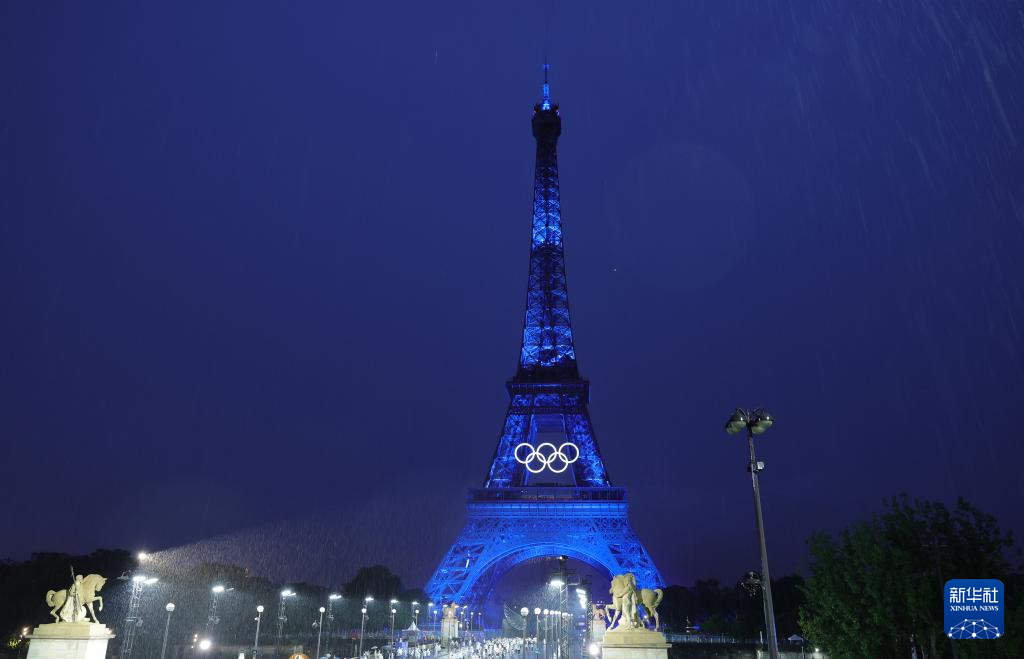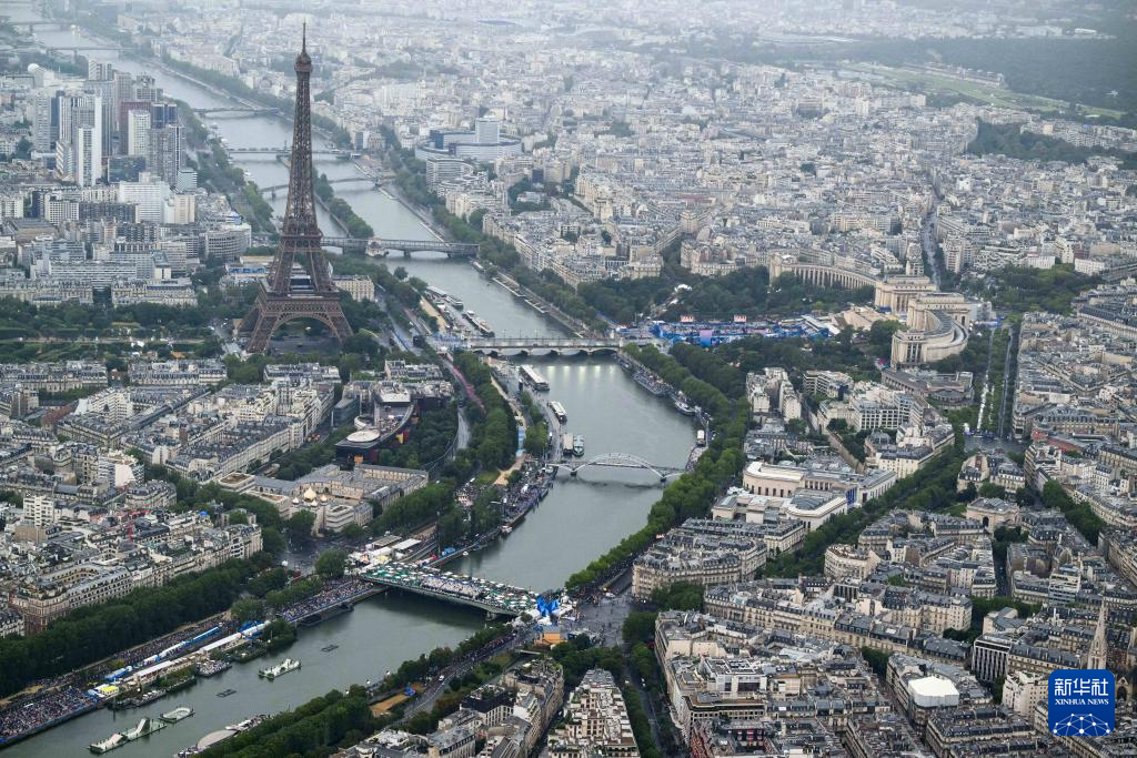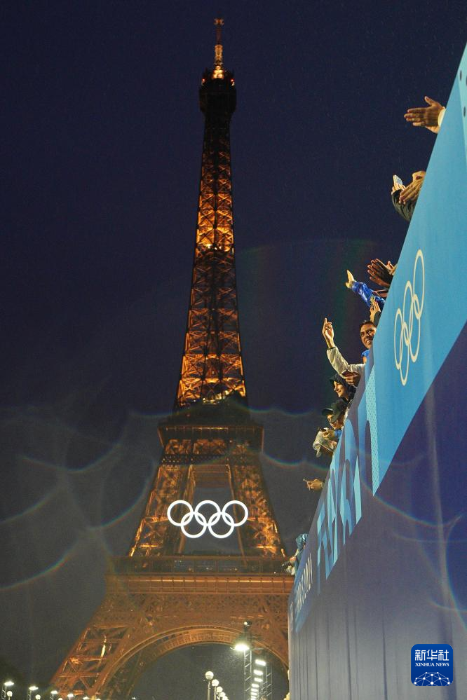 俯瞰開幕式上的埃菲爾鐵塔(7月26日攝)。新華社發(POOL照片/利昂內(nei) 爾·博納旺蒂爾)