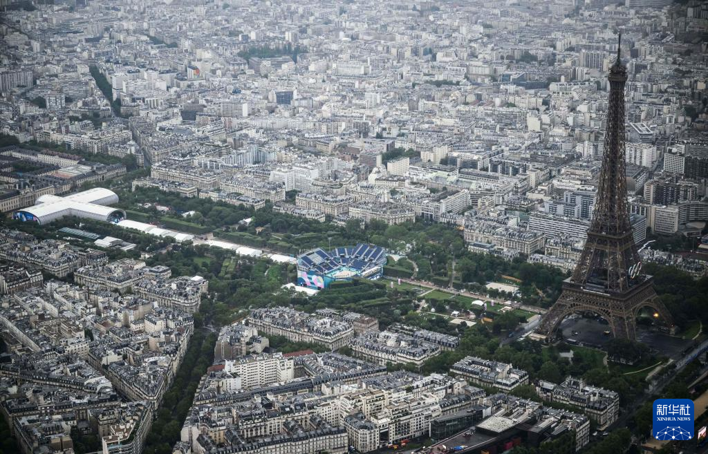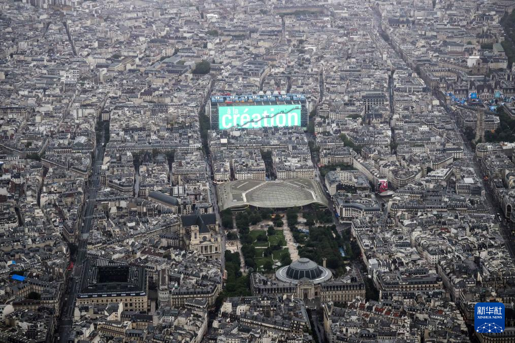 俯瞰開幕式上的埃菲爾鐵塔和戰神廣場(7月26日攝)。新華社發(POOL照片/利昂內(nei) 爾·博納旺蒂爾)