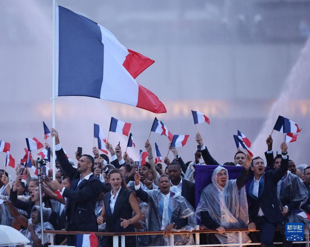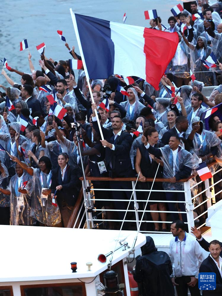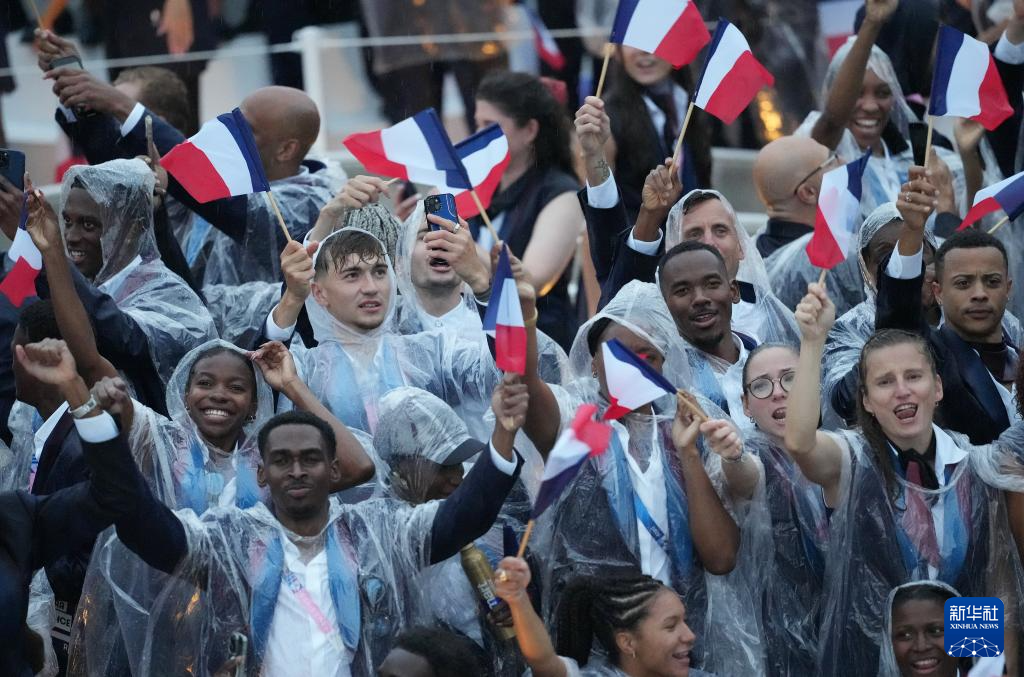 7月26日,法國體(ti) 育代表團在開幕式上。新華社記者 趙丁喆 攝