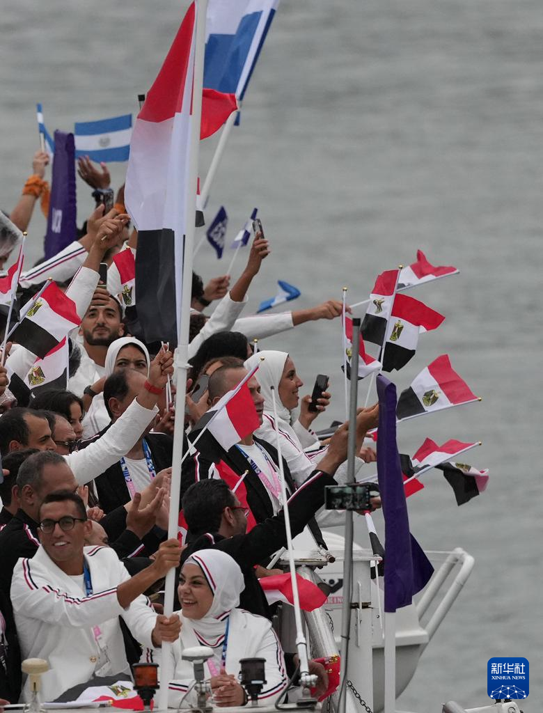 7月26日,埃及體(ti) 育代表團(右)在開幕式上。新華社記者 萬(wan) 象 攝