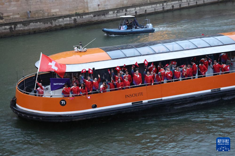 7月26日,瑞士體(ti) 育代表團在開幕式上。新華社記者 趙丁喆 攝