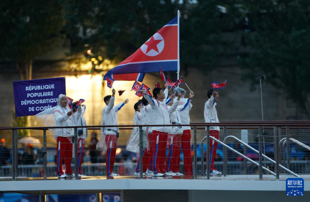 7月26日,朝鮮體(ti) 育代表團在開幕式上。新華社記者 費茂華 攝