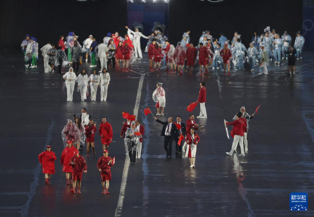 7月26日,中國體(ti) 育代表團在開幕式上。新華社記者 呂小煒 攝