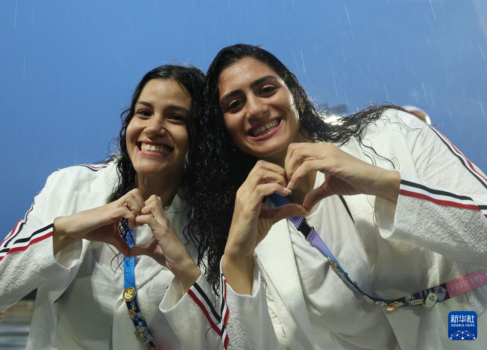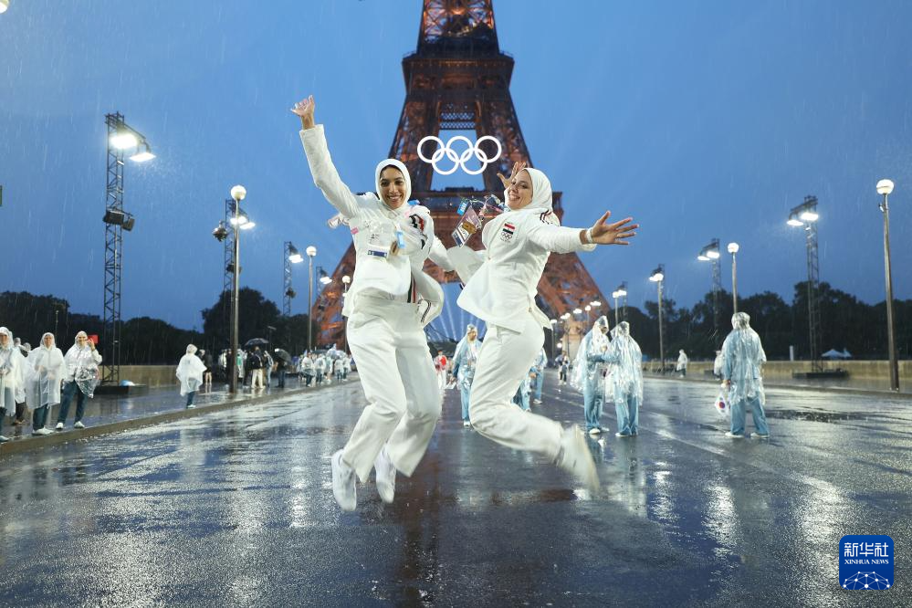 7月26日,埃及體(ti) 育代表團成員在埃菲爾鐵塔前。新華社記者 李明 攝