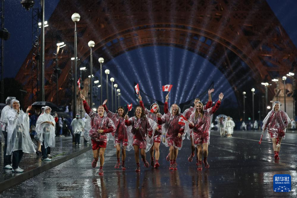 7月26日,加拿大體(ti) 育代表團成員在開幕式前。新華社記者 曹燦 攝