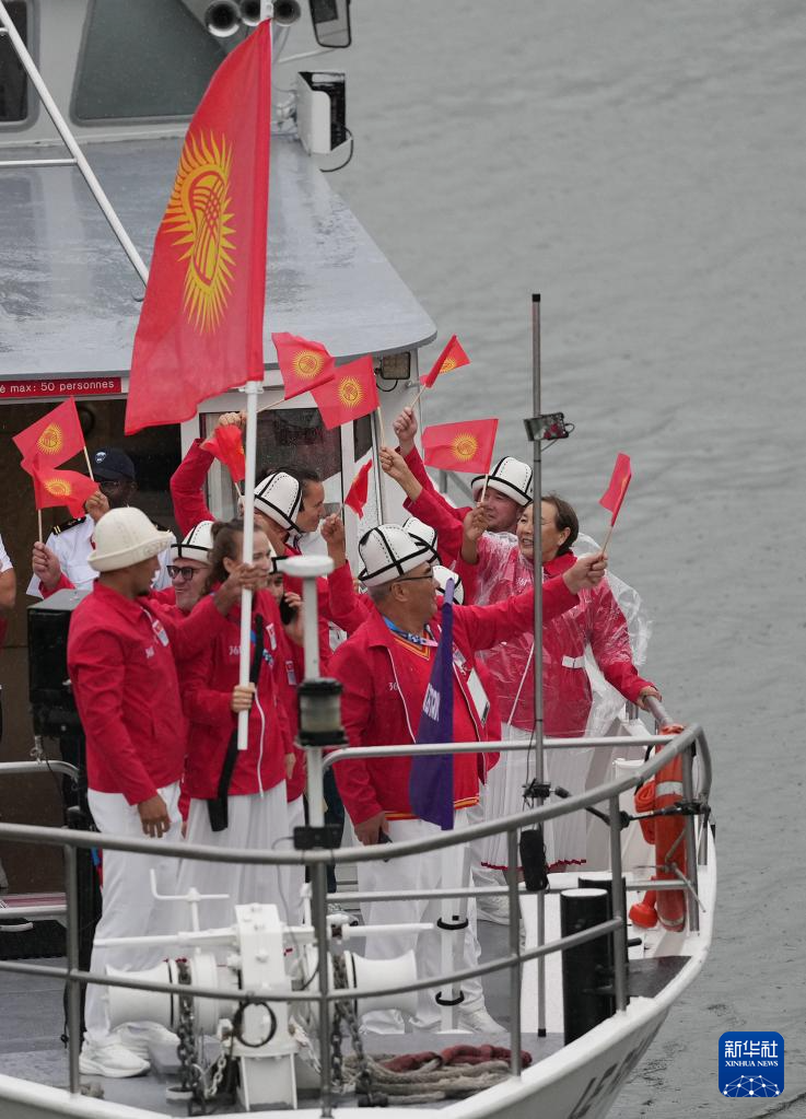 7月26日,吉爾吉斯斯坦體(ti) 育代表團在開幕式上。新華社記者 萬(wan) 象 攝