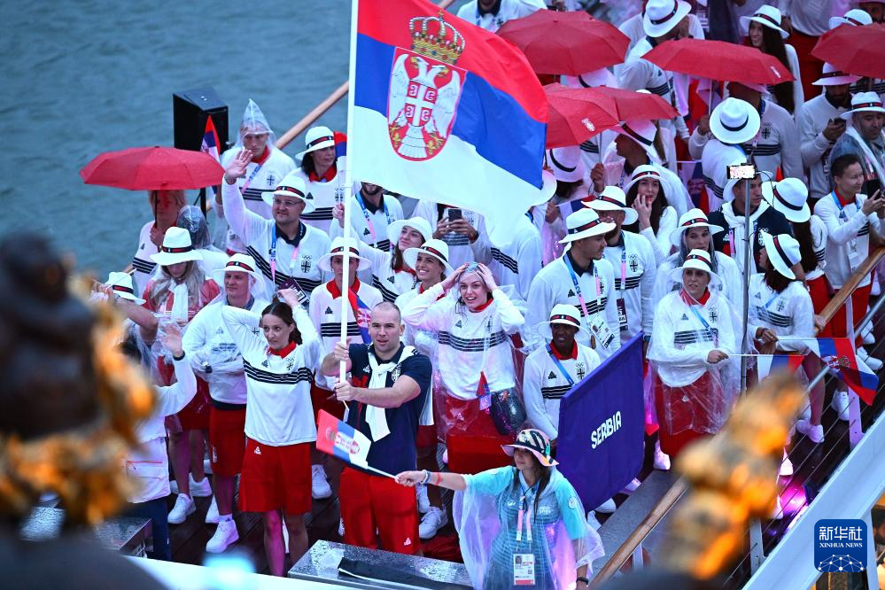 7月26日,塞爾維亞(ya) 體(ti) 育代表團成員在開幕式上。新華社記者 張宏祥 攝