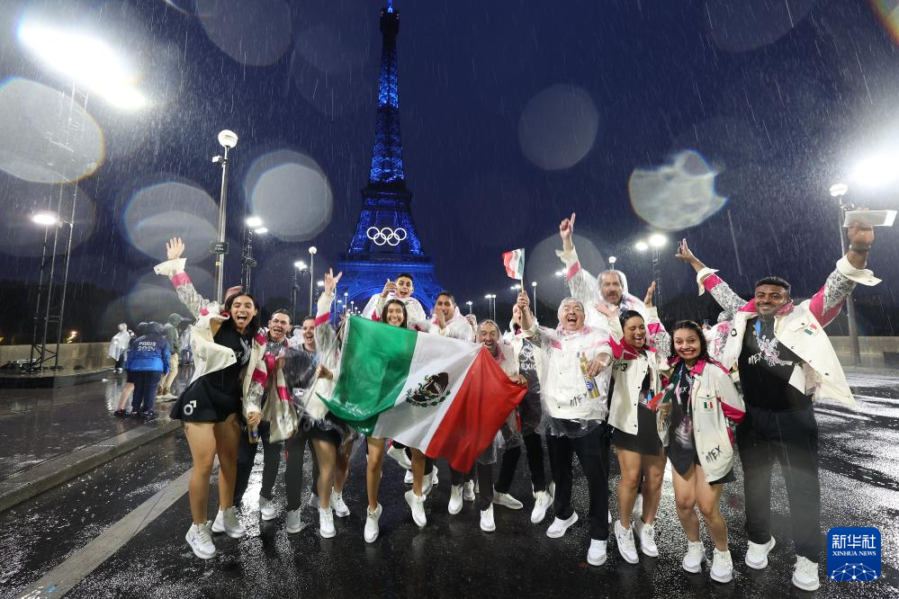 7月26日,墨西哥體(ti) 育代表團成員在埃菲爾鐵塔前。新華社記者 李明 攝