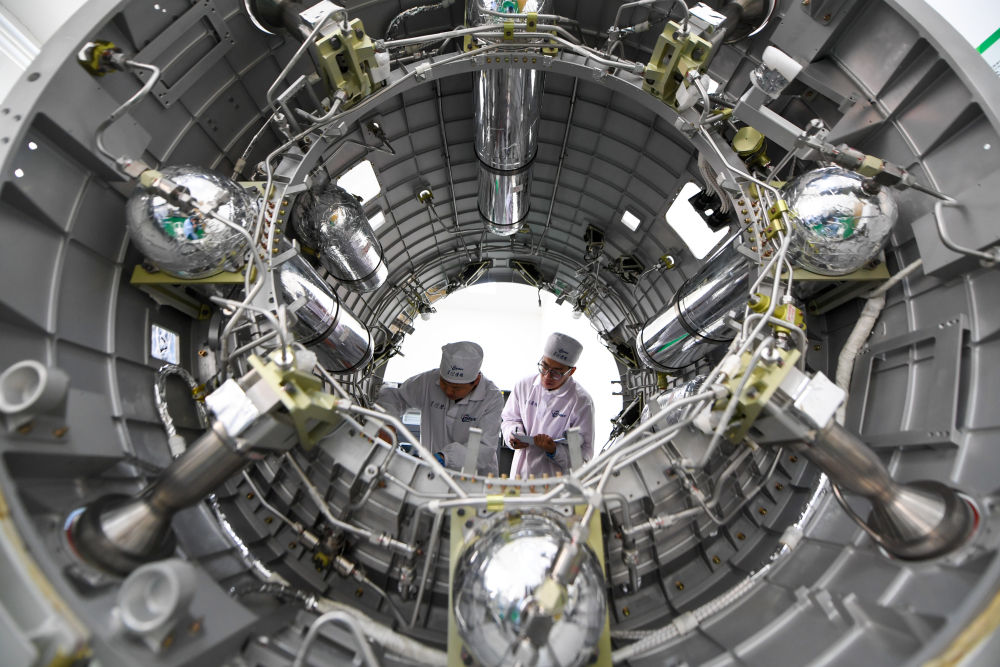 在北京星際榮耀空間科技股份有限公司,裝配測試人員在安裝液體(ti) 姿軌控動力係統(2024年2月28日攝)。新華社記者 鞠煥宗 攝
