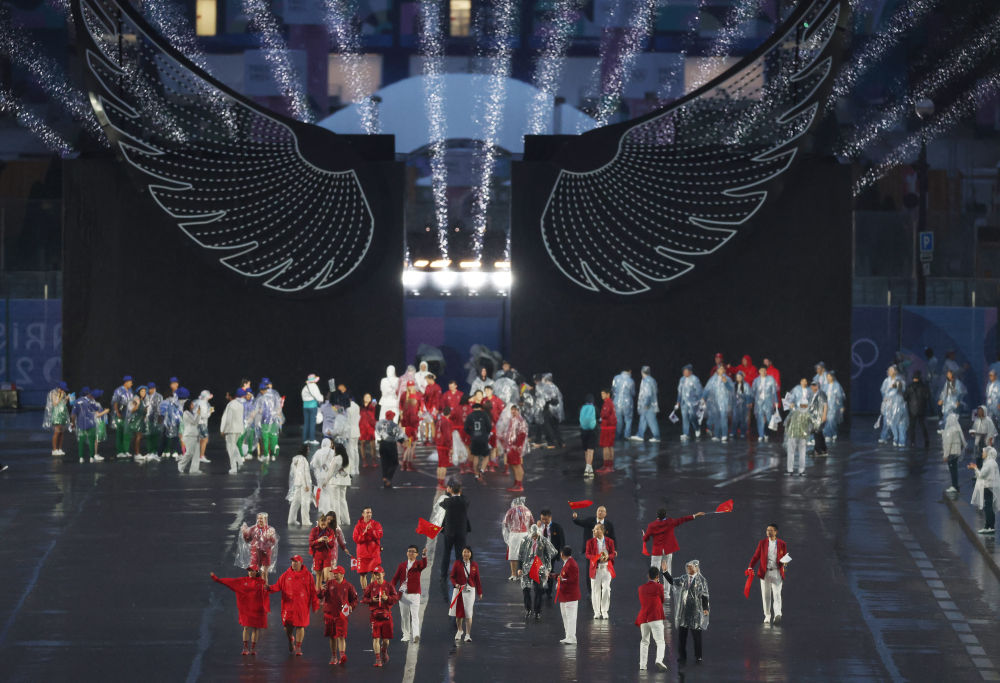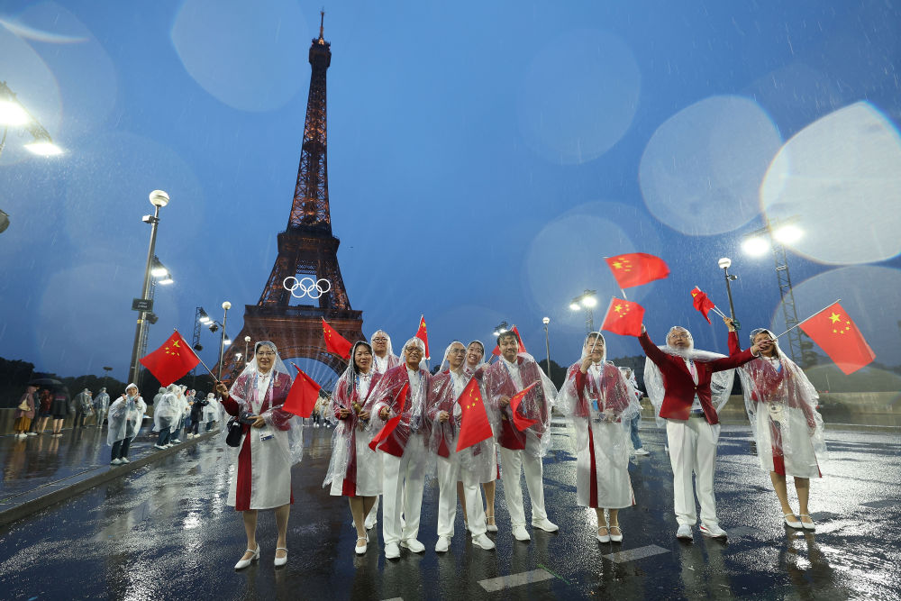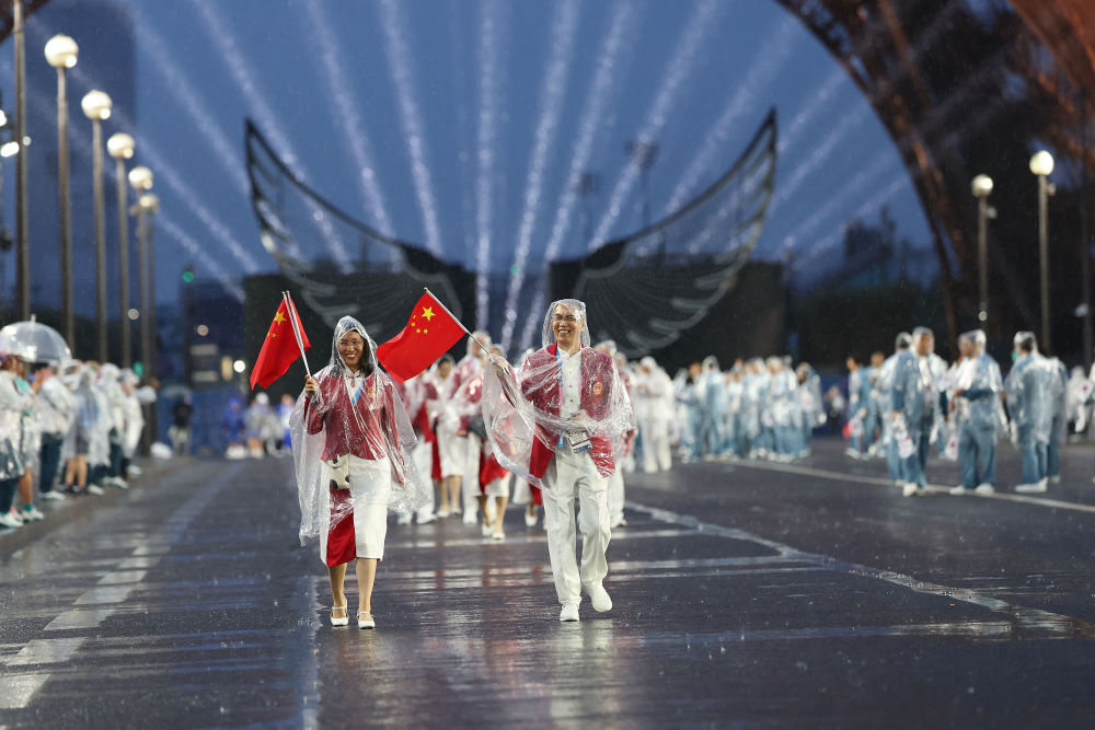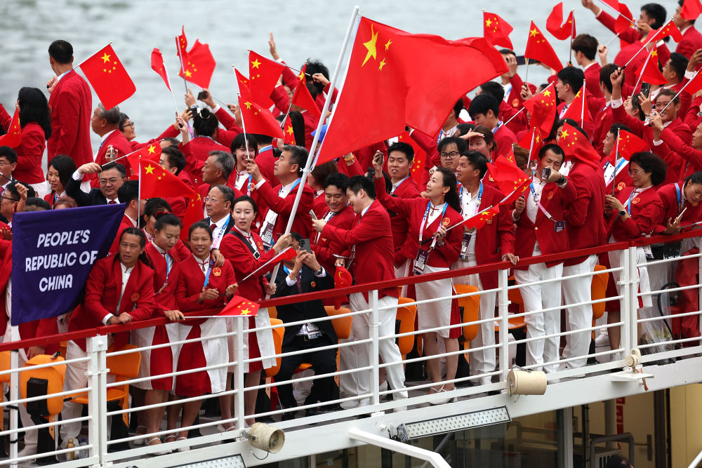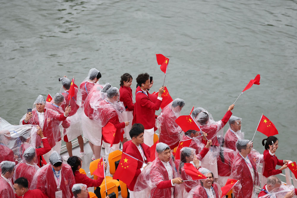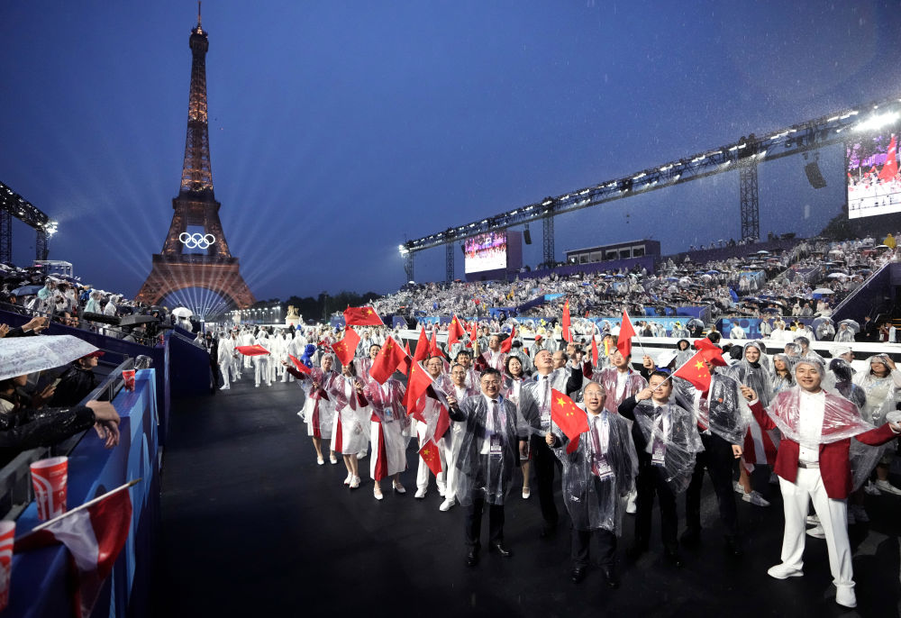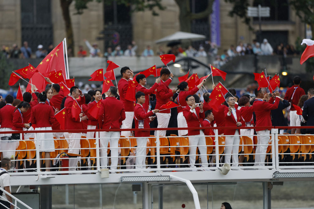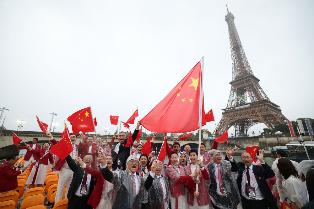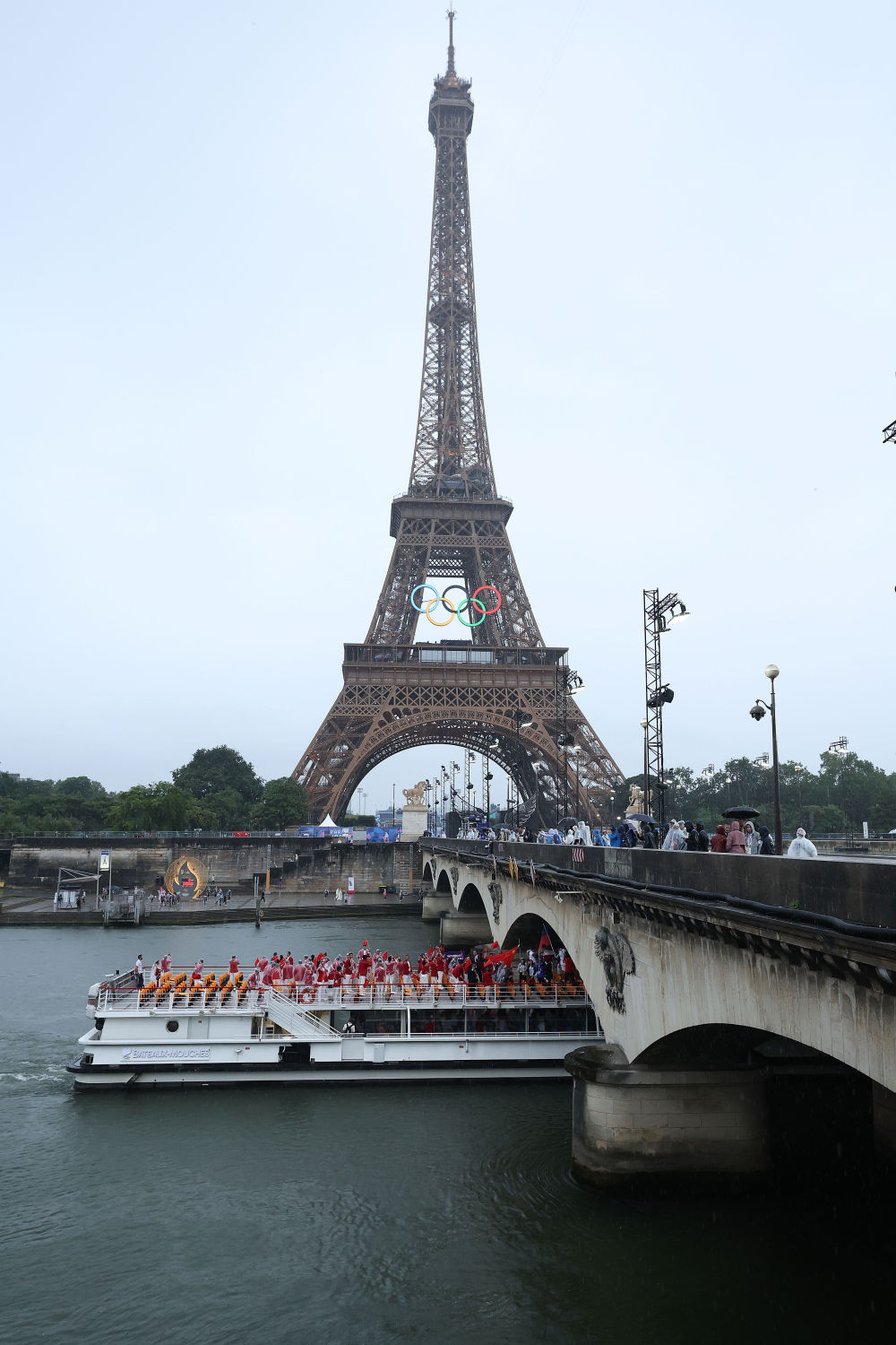 當地時間7月26日,第33屆夏季奧林匹克運動會(hui) 開幕式在法國巴黎舉(ju) 行。乒乓球運動員馬龍、花樣遊泳運動員馮(feng) 雨高擎五星紅旗,中國體(ti) 育代表團運動員乘船在塞納河巡遊。