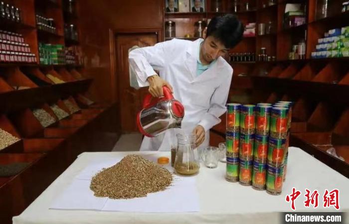 和田藥茶製作技藝傳(chuan) 承人買(mai) 提卡斯木·芒裏克正在泡製藥茶。(資料圖)受訪者供圖