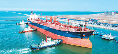 東(dong) 營海關(guan) 數據顯示,今年上半年,山東(dong) 省東(dong) 營市東(dong) 營港進出境貨運量807.3萬(wan) 噸、貨值344.7億(yi) 元,同比分別增長492.2%、556.5%。圖為(wei) 7月30日,東(dong) 營港10萬(wan) 噸級碼頭,進口貨輪經海關(guan) 監管後,駛出碼頭。