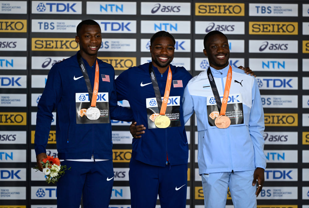 埃裏揚·奈頓(左)在2023年田徑世錦賽中獲得男子200米亞(ya) 軍(jun) 。新華社記者 宋彥樺 攝