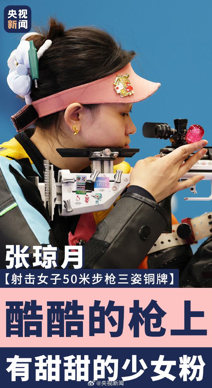 8月2日,在巴黎奧運會(hui) 射擊女子50米步槍三姿決(jue) 賽中,中國選手張瓊月奪得銅牌。戴著粉色帽子的張瓊月,步槍上貼滿可愛的Hello Kitty貼紙,用最萌的裝備打最穩的槍!