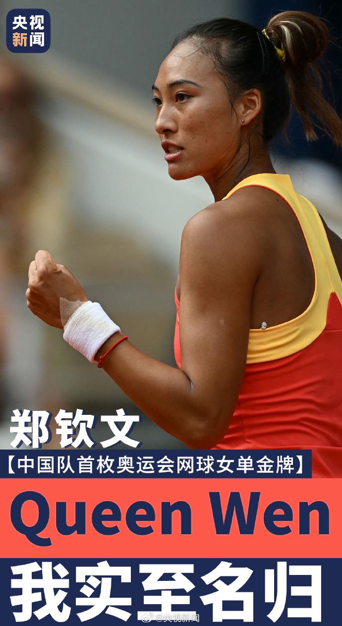 當地時間8月3日,在巴黎奧運會(hui) 網球女子單打金牌賽中,中國選手鄭欽文大比分2:0戰勝克羅地亞(ya) 選手維基奇,奪得金牌。這是中國選手獲得的首枚奧運會(hui) 網球女單金牌。