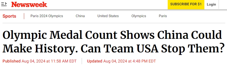 中國日報網8月5日電 2024巴黎奧運會(hui) 賽程已過半。截至北京時間5日16時10分,中國隊以20金15銀12銅,總共47枚獎牌的優(you) 異表現,位居獎牌榜第一。外國媒體(ti) 對於(yu) 中國隊在本屆奧運會(hui) 網球、遊泳等項目上的突破以及在傳(chuan) 統優(you) 勢項目上一如既往的穩健表現給予了相當大的關(guan) 注。