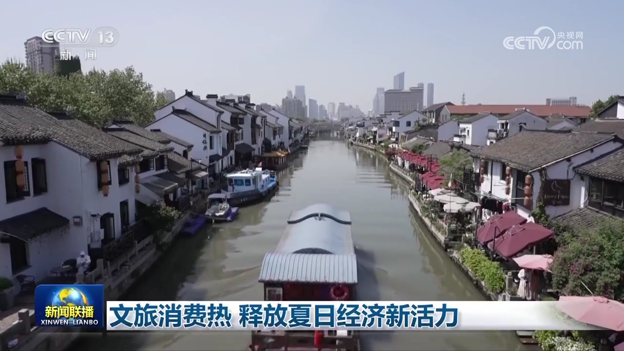 在江蘇無錫古運河畔,暑期以來人氣火爆。七月接待遊客超400萬(wan) 人次,曆史文化街區增加了演藝互動,打造消費新場景,成為(wei) 學生遊、家庭親(qin) 子遊的熱門打卡地。