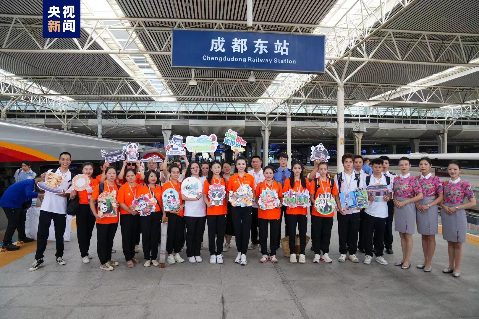 記者從(cong) 成都世運會(hui) 執委會(hui) 和中國鐵路成都局集團公司了解到,今天發車的“世運蓉港行”主題列車(G2963成都東(dong) 站——香港西九龍站),搭載了川籍奧運冠軍(jun) 、輪滑運動員、蓉港企業(ye) 家、川劇藝術家、非遺傳(chuan) 承人、川菜企業(ye) 、博物館金牌講解員等嘉賓赴港。