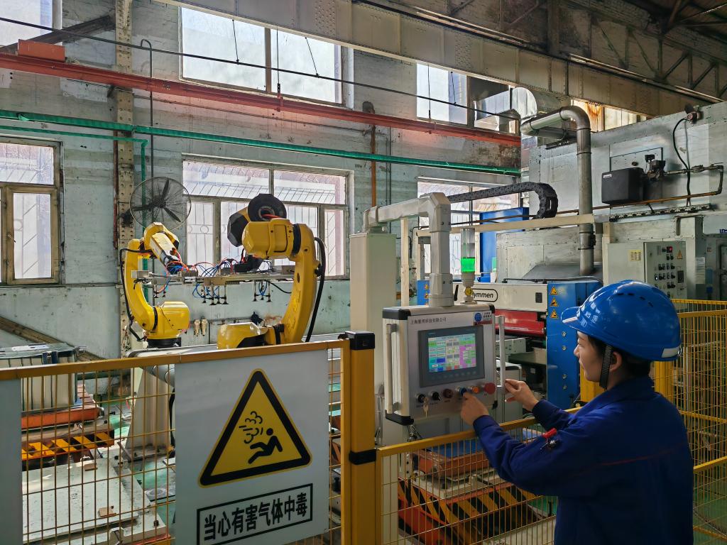 2024年上半年,東(dong) 輕“數智化圓錠加工園區”正式落成。在這條由蘇聯援建的鋁合金中小直徑圓錠生產(chan) 線上,機器人無需人工幹預,通過全自動的定位和抓取,短時間內(nei) 就能完成上料填裝等全套流程。“改造前,這條生產(chan) 線各道工序均需人工參與(yu) ,效率較低且伴有高強度重複性勞動。”東(dong) 輕熔鑄廠設備保障組二級技師王驍睿介紹,“機器人操作在保障生產(chan) 進度、提高作業(ye) 質量的同時,有效緩解了崗位人手配置壓力。人機分離後,安全保障也得到了明顯提升。”