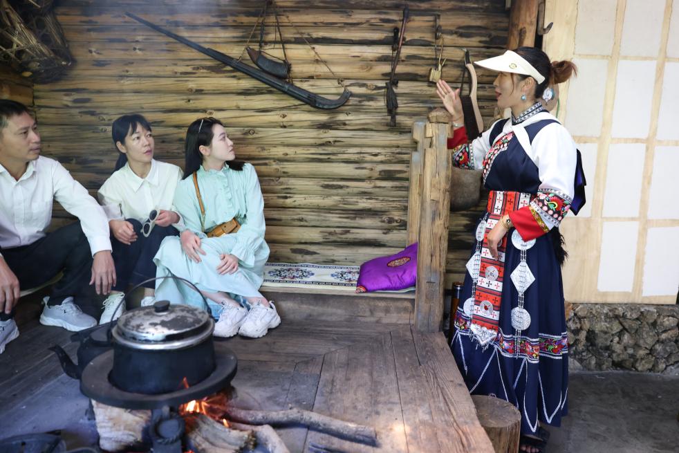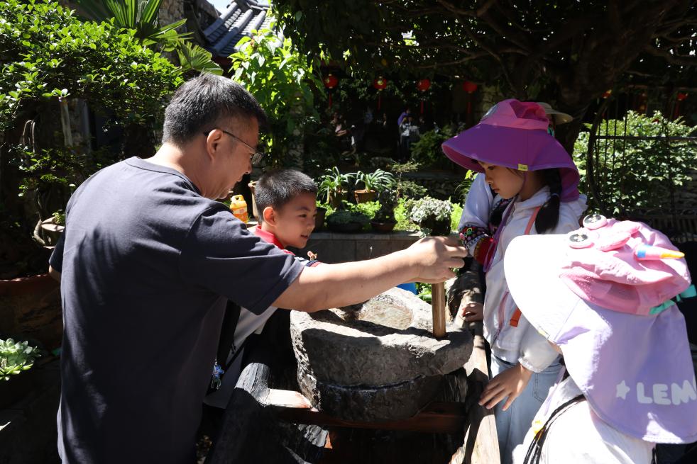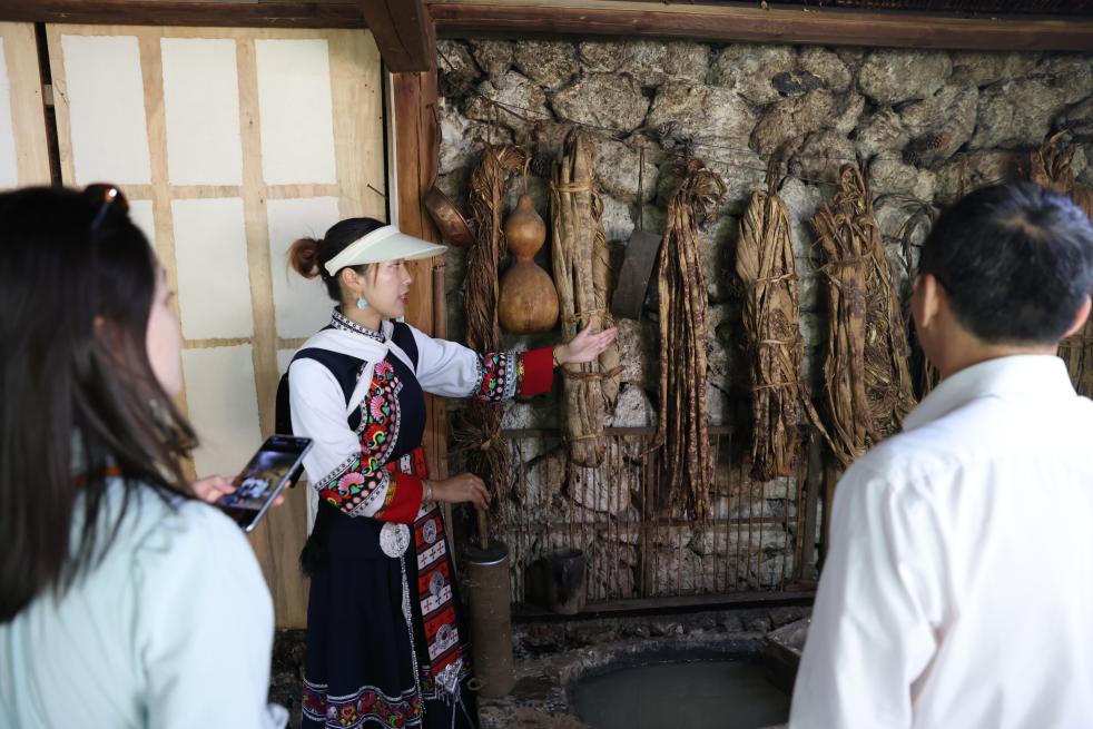 7月31日,廣西遊客藍夢婷一家在麗(li) 江市玉龍納西族自治縣玉湖村的一處納西族村民家中體(ti) 驗當地特色文化。新華社記者 呂帥 攝