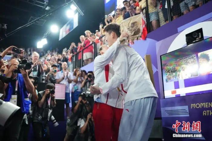 資料圖:北京時間8月6日,在巴黎奧運會(hui) 跳水女子10米台決(jue) 賽中,東(dong) 京奧運會(hui) 該項目冠軍(jun) 得主全紅嬋成功衛冕,陳芋汐獲得亞(ya) 軍(jun) 。圖為(wei) 全紅嬋和陳芋汐相擁。