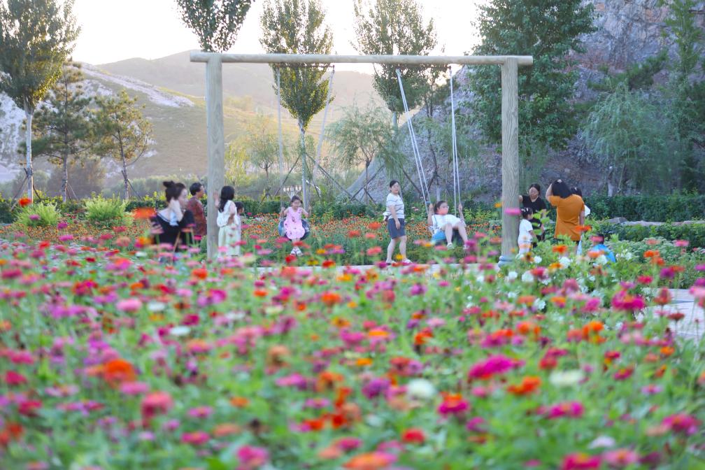 市民在由采石場修複治理和綠化建設而成的遼寧北票市山體(ti) 公園休閑遊玩(2024年8月8日攝)。新華社記者 楊青 攝