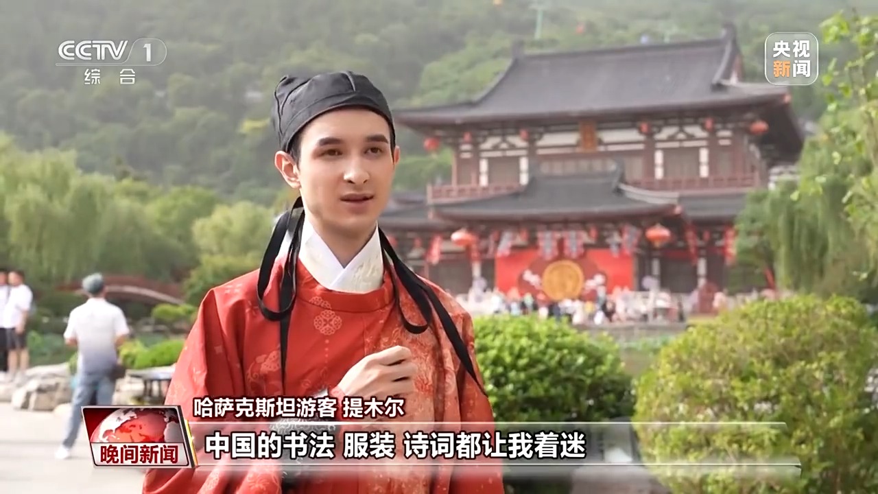 哈薩克斯坦遊客提木爾:中國的書(shu) 法、服裝、詩詞都讓我著迷,今天穿著這身中國的傳(chuan) 統服飾,體(ti) 驗中國唐代的宮廷婚禮,這個(ge) 經曆真的太獨特,太珍貴了。