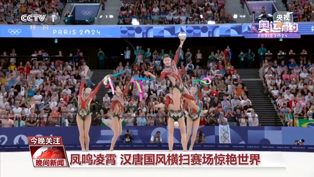 而在藝術體(ti) 操女子團體(ti) 全能決(jue) 賽中,中國藝術體(ti) 操的姑娘們(men) 以總分69.8分,拿下該項目的金牌。在決(jue) 賽三帶兩(liang) 球項目《鳳鳴淩霄》表演中,伴隨著動聽的音樂(le) ,姑娘們(men) 靈活地運用彩帶和球,以精準的動作、極具張力的表演,詮釋了漢唐國風的民族美學。