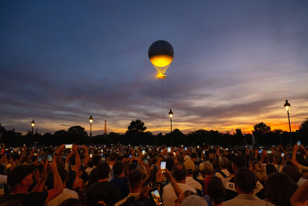 曆史建築與(yu) 現代藝術的融合彰顯法式浪漫。埃菲爾鐵塔上的燈光秀劃破夜空。特羅卡德羅廣場上,神秘人將火炬交給法國傳(chuan) 奇球星齊達內(nei) ,不久後,杜樂(le) 麗(li) 花園內(nei) 的主火炬——一個(ge) 直徑7米的火焰環,頂部是一個(ge) 高30米、直徑22米的係留氣球,被“點燃”。