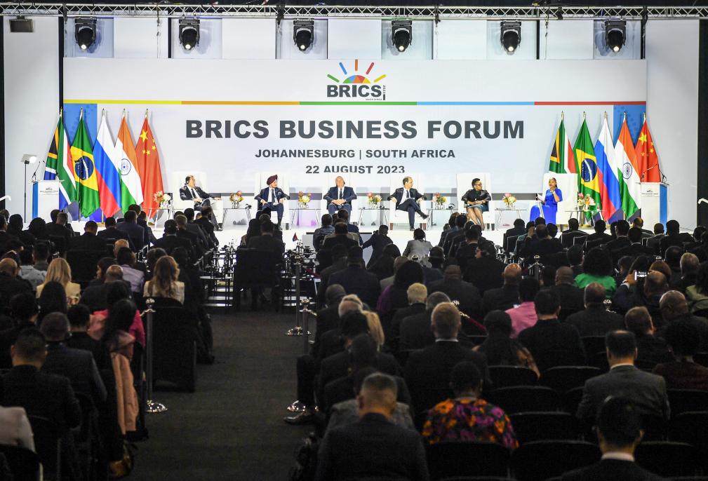 這是2023年8月22日在南非約翰內(nei) 斯堡拍攝的金磚國家工商論壇現場。新華社記者李亞(ya) 輝攝
