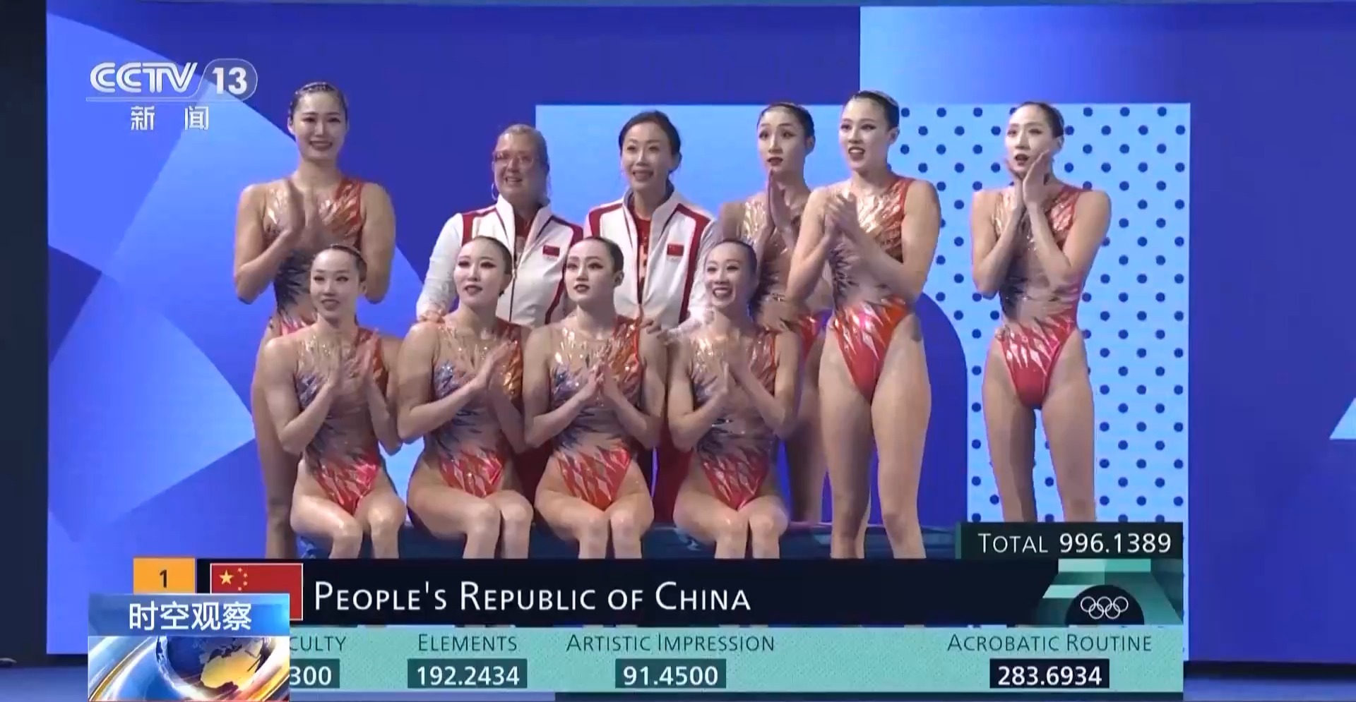 996.1389分!中國花遊姑娘們(men) 以三場比賽穩居第一的優(you) 異表現,贏得了中國花遊在奧運會(hui) 上奪得的首枚金牌。