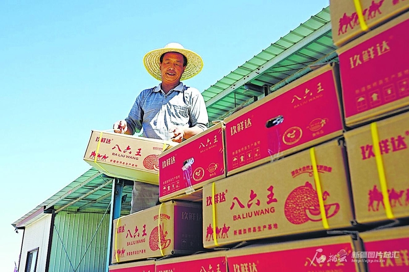 8月5日,位於(yu) 伽師縣臥裏托格拉克鎮的新疆果品(伽師)批發交易市場,工人在裝運伽師瓜,準備運往疆外。便捷的交通,讓當地農(nong) 產(chan) 品快速發往全國。 石榴雲(yun) /新疆日報記者何新社攝