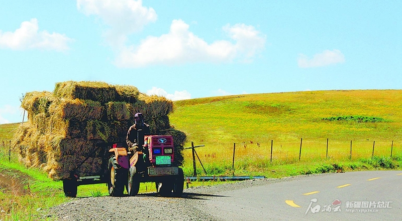 8月8日,位於(yu) 裕民縣巴爾魯克山區的阿克喬(qiao) 克草原,牧民駕駛拖拉機拉運草料。近年來,該縣通過對農(nong) 村公路升級改造,優(you) 化了城鄉(xiang) 公路網,為(wei) 農(nong) 牧民出行、農(nong) 作物運輸提供更多便利條件。 楊化光攝