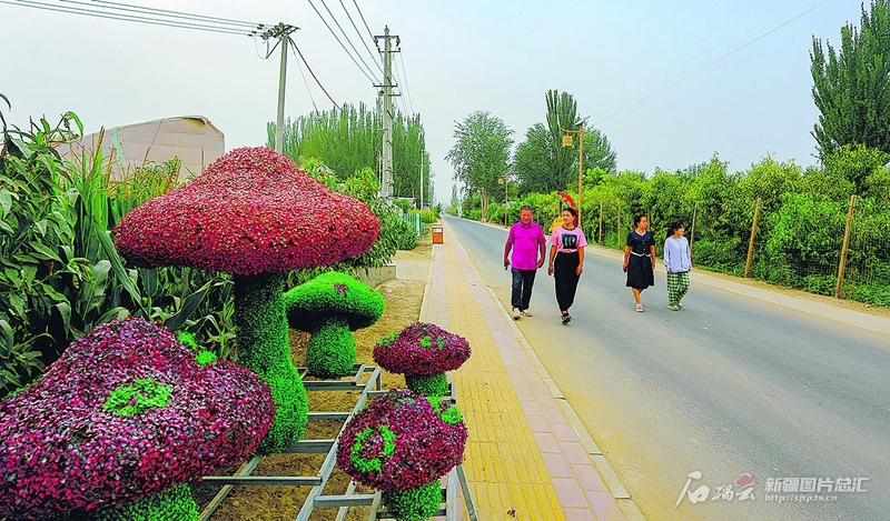 8月8日,洛浦縣恰爾巴格鎮闊恰艾日克村村民在家門口的柏油路上散步。買(mai) 買(mai) 提艾力·艾尼瓦爾攝